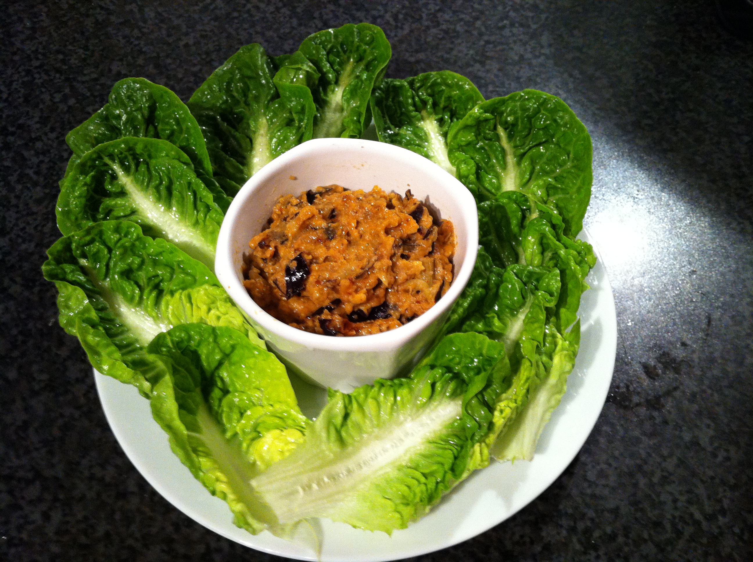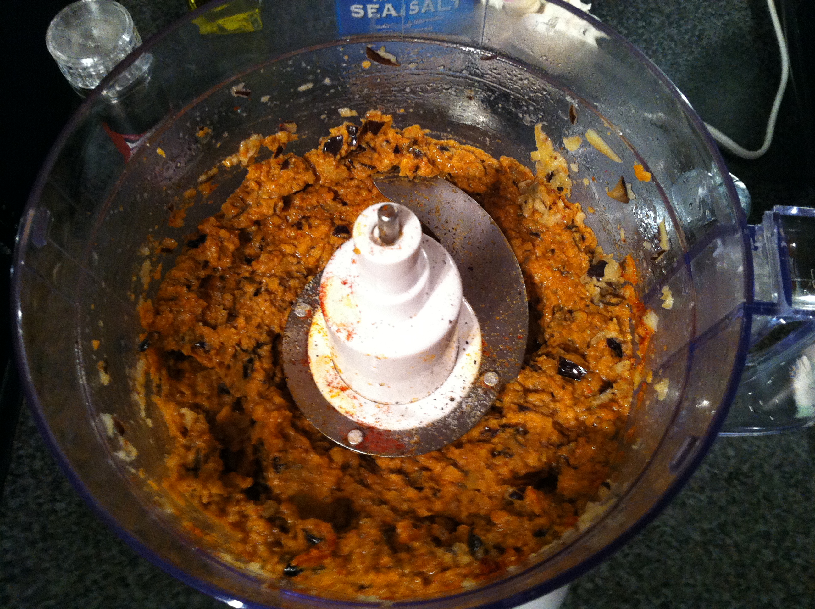 To start of the New Year I’ve come up with some Paleo Party Food; this recipe came about after eating some very badly cooked aubergine in a restaurant and, in the past, I have had trouble getting aubergine to be nice and soft. A solution became apparent, puree the aubergine! One other method, which I’ve used in the past in my ratatouille recipe, is to salt the aubergine; this removes some of the liquid from the aubergine and allows them to fry with less oil. In the past I’ve found this helps keep the aubergine soft however I have tried both salting and not salting and have found that there is no difference in taste for the purpose of this recipe. Additionally if you are making it with the anchovies I wouldn’t recommend salting the aubergine as well; there would be too much salt; it ruins the taste and certainly isn’t good for you.