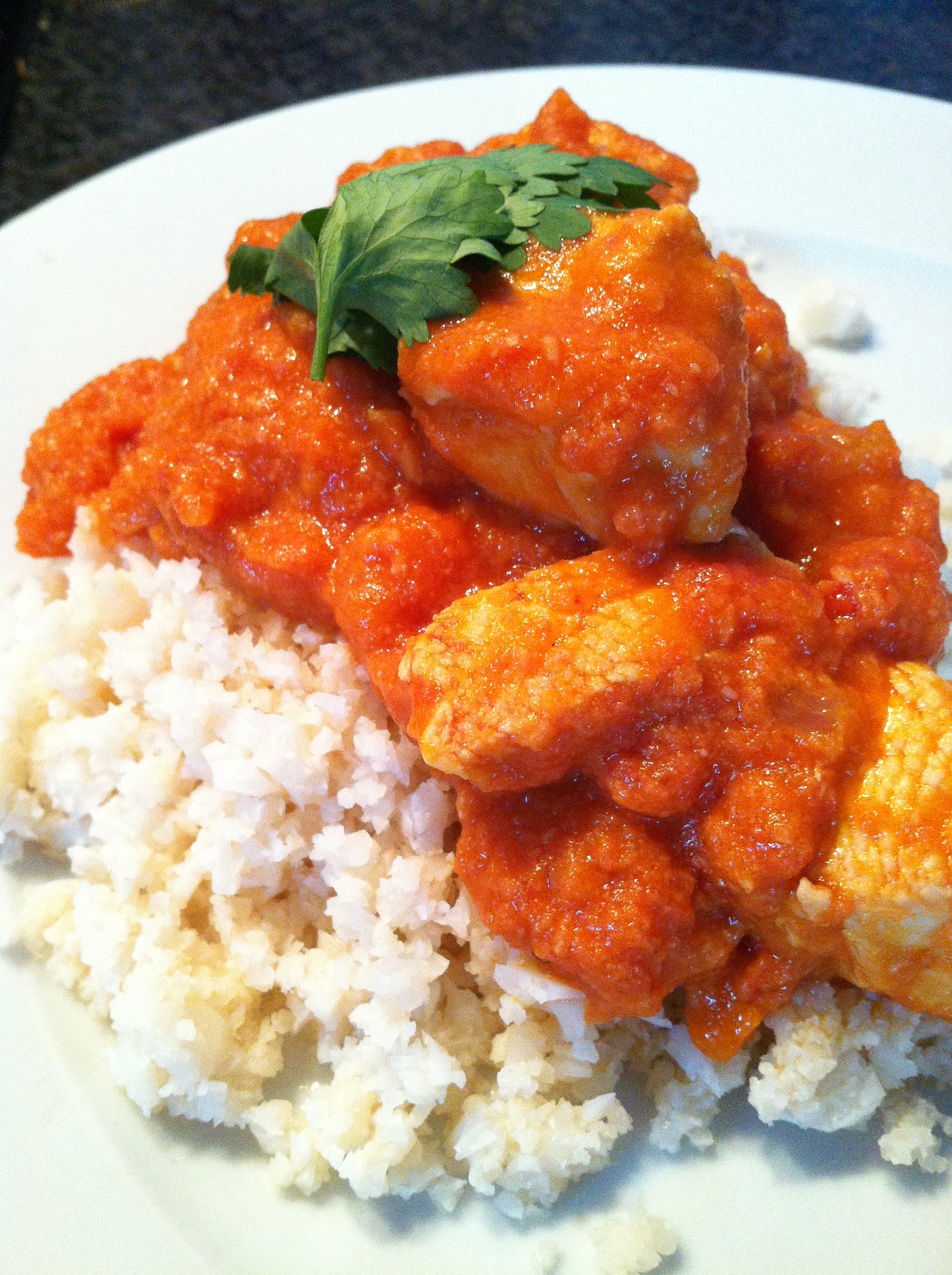 Now when you think of chicken korma I’m sure you think of chicken in a thick pale/yellow, creamy sauce from your local Indian restaurant or takeaway. Would it surprise you to know that that’s not how korma’s should look? The sauce for a korma is usually tomato based with yoghurt or cream added at the end, the modern UK korma however is cooked in the thick cream sauce we are used to. The word korma comes from an Urdu word meaning ‘braise’ and a traditional Indian korma is made this way. This korma recipe, which is originally by Madhur Jaffrey that I’ve altered slightly, is delicious but allows you to make it amongst your busy schedule. The recipe makes for a delicious and healthy ‘fakeaway’ to fool your friends and goes very well with cauliflower rice.