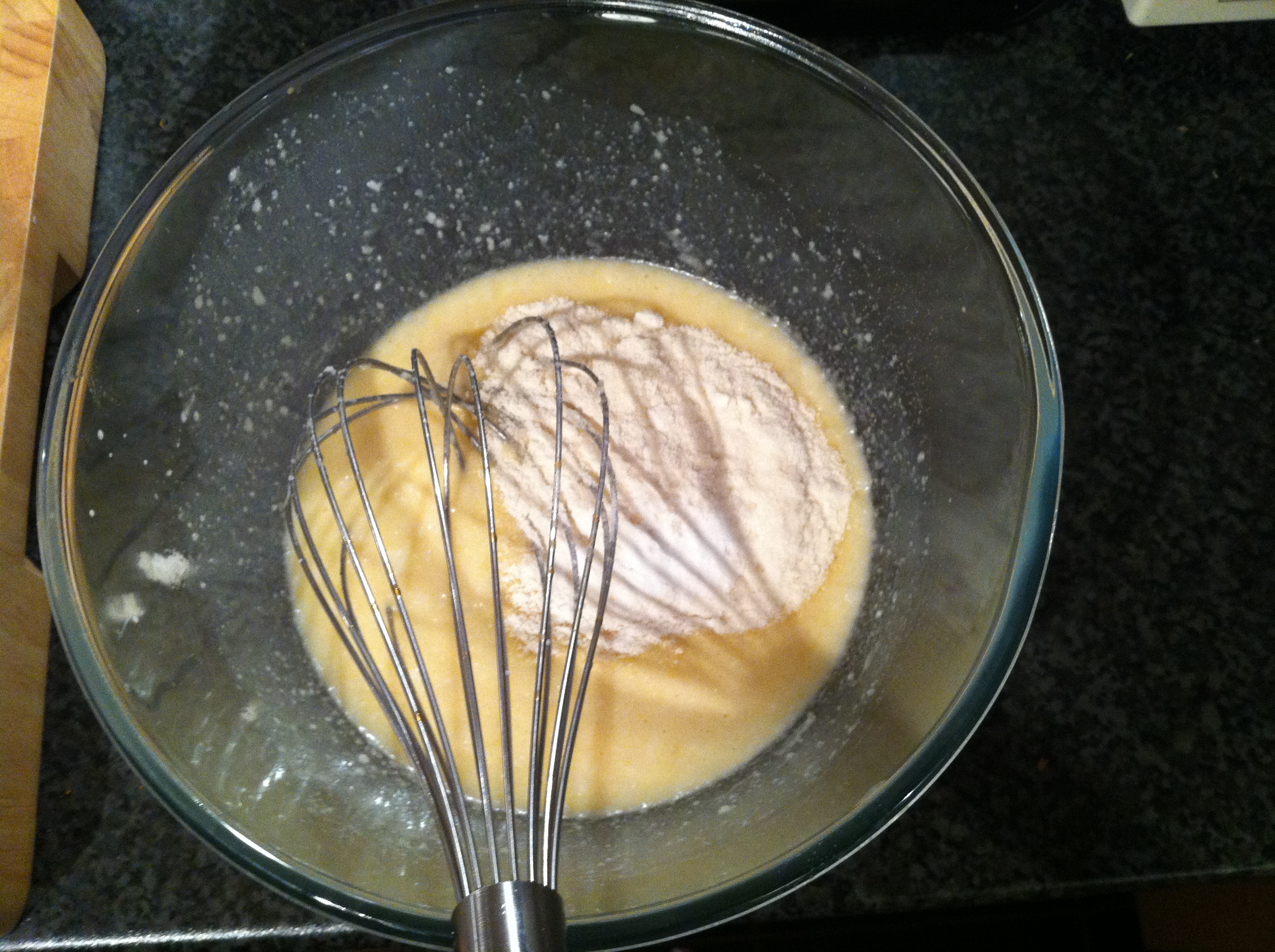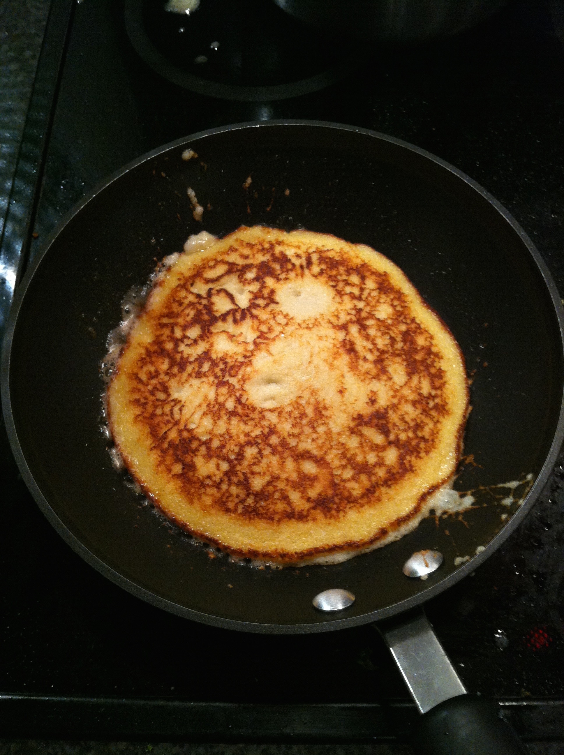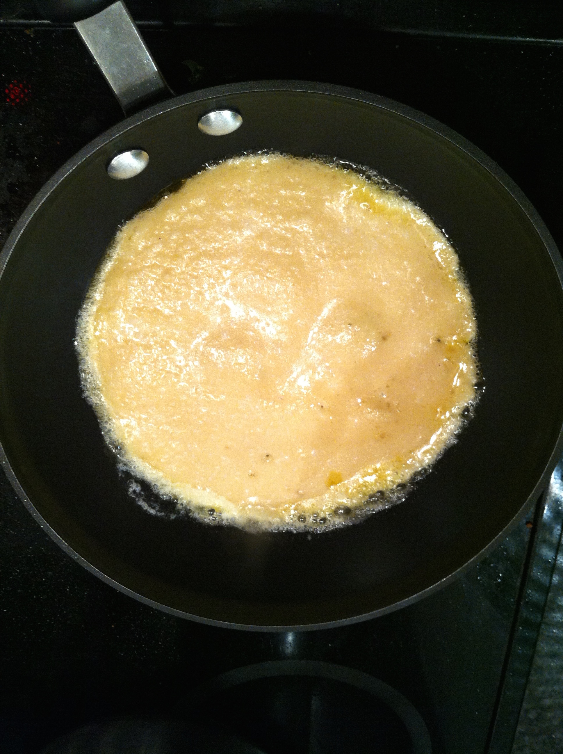 In a small frying pan melt a nob of butter over a medium-high heat and add a small amount of the batter so that the bottom of the pan is covered; this is where my results and your results may differ. Cook for a few minutes until the bottom is brown using a pallet knife to ensure the pancakes does stick to the side of the pan.